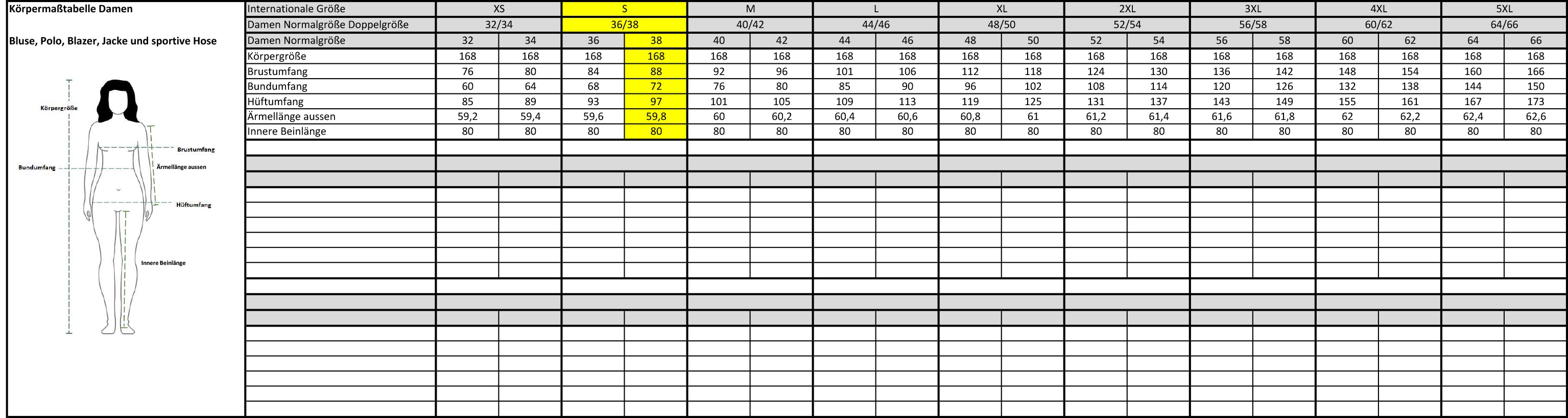 20 % Übergrößenzuschlag Herren ab Gr. 62 | 31 | 122 & Damen ab Gr. 52 - 54