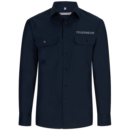 Diensthemd, marineblau, Feuerwehr Mecklenburg-Vorpommern und Nordrhein-Westfalen mit Stick, langarm, Herren