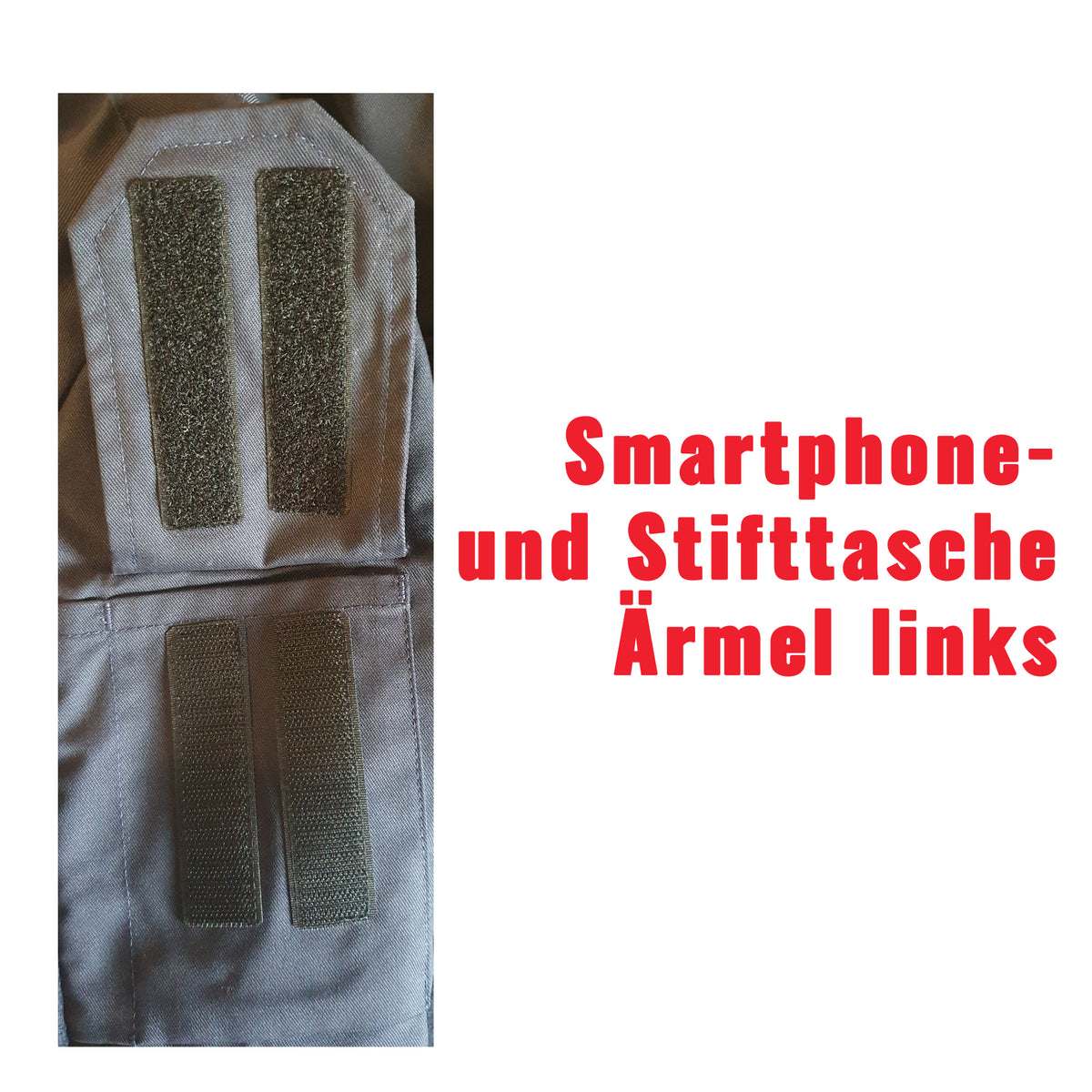- Smartphone- und Stifttasche auf linkem Ärmel