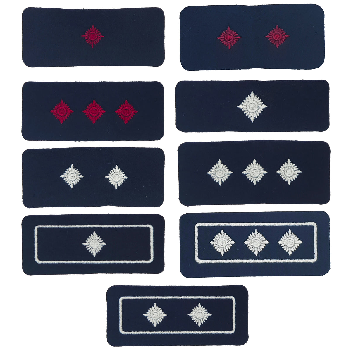 Maschinengestickte Funktionsabzeichen auf Filz (dunkelblau) und je nach Auswahl in den Farben Silber oder Bordeauxviolett mit Stickkunstseide bestickt.